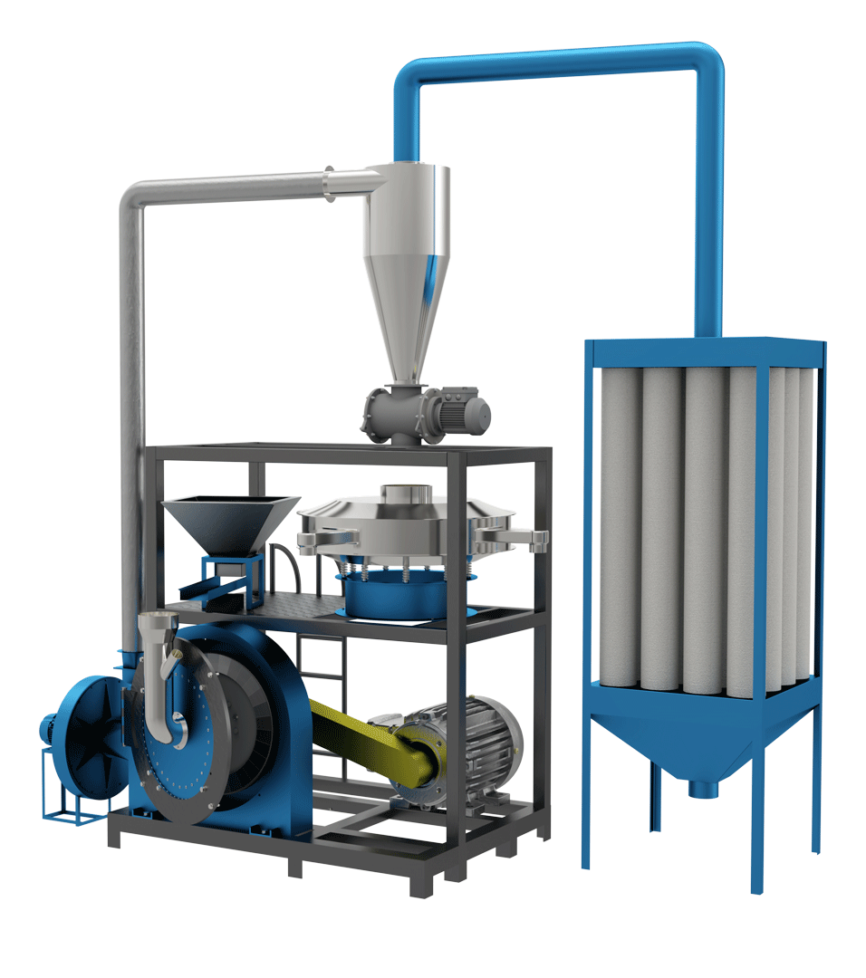 آسیاب پلاستیک جهت خردایش انواع مواد، از جمله مواد پلیمری، الاستومری، الیاف و پلاستیک مورد استفاده قرار می گیرد. در قسمت اصلی آسیاب دو صفحه مقابل هم وجود دارند که نسبت به هم با سرعت دورانی مشخصی می چرخند و مواد ورودی از ناحیه مرکزی به داخل آسیاب به داخل آسیاب وارد می شوند. نیروی گریز از مرکز باعث انتقال مواد به فضای مابین صفحات شده و در اثر برخورد به صفحات چرخان، خرد می شوند. در هنگام خردایش مواد به منظور جلوگیری از ذوب شدن مواد صفحات به وسیله جریان سیال خنک می شوند.