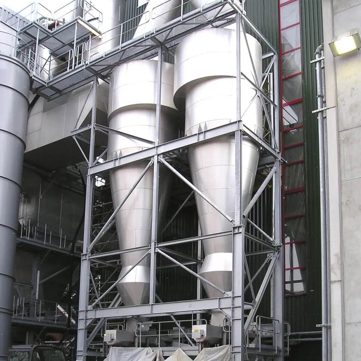 از جمله تجهیزاتی که به وفور مورد استفاده قرار می گیرد، می توان به سیکلون ها اشاره کرد. به طور کلی سیکلون ها وظیفه دارند تا غبار موجود در هوا را از آن جدا کنند. هندسه سیکلون ها به نحوی است که یک نیروی گریز از مرکز به ذرات موجود در هوا ایجاد می کند. این نیروی گریز از مرکز سبب می شود تا حد قابل توجهی از ذرات به دیواره سیکلون بچسبند. در این هنگام سرعت ان ها به صفر رسیده و از هوا جدا می شوند. نکته ای که در سیکلون ها اهمیت دارد، کات سایز اندازه ذرات ان است. این کات سایز عموما بر اساس قطر سیکلون تعیین می شود.